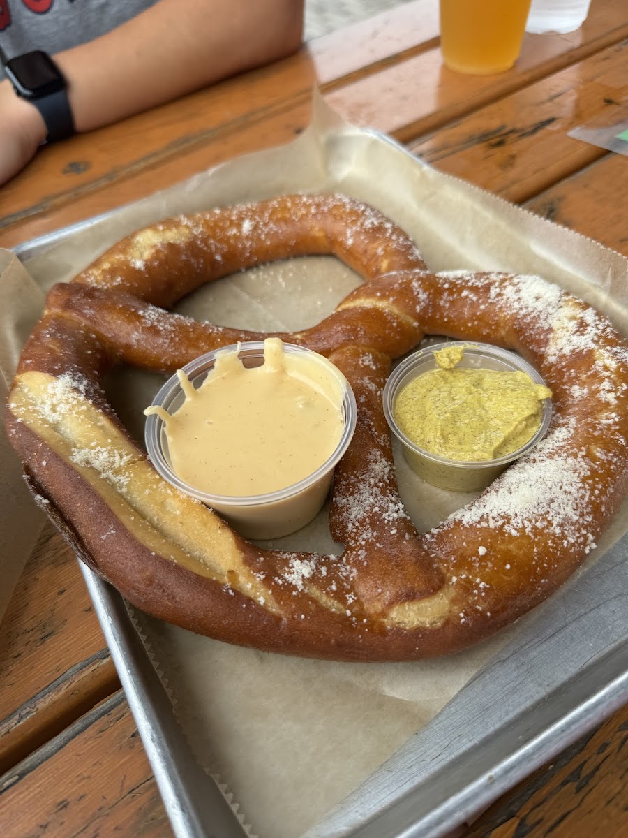 One of the highlights of Solace Outpost is its diverse menu, featuring a variety of crowd-pleasers. For starters, the crispy chicken thighs are a must-try. Juicy on the inside with a perfectly crisp coating, they are an excellent choice for anyone craving savory, satisfying comfort food. Another favorite among regulars are the tater tots-golden, crunchy, and seasoned to perfection. If you're in the mood for something a little different, the jumbo pretzel is sure to impress with its soft, warm texture, making it a great snack to share or enjoy solo.